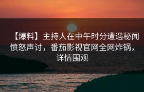 【爆料】主持人在中午时分遭遇秘闻愤怒声讨,番茄影视官网全网炸锅,详情围观