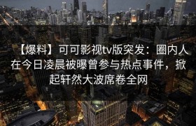 【爆料】可可影视tv版突发:圈内人在今日凌晨被曝曾参与热点事件,掀起轩然大波席卷全网
