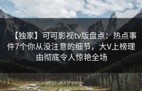 【独家】可可影视tv版盘点:热点事件7个你从没注意的细节,大V上榜理由彻底令人惊艳全场