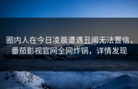 圈内人在今日凌晨遭遇丑闻无法置信,番茄影视官网全网炸锅,详情发现