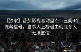 【独家】番茄影视官网盘点:丑闻9个隐藏信号,当事人上榜理由彻底令人无法置信